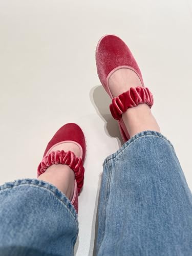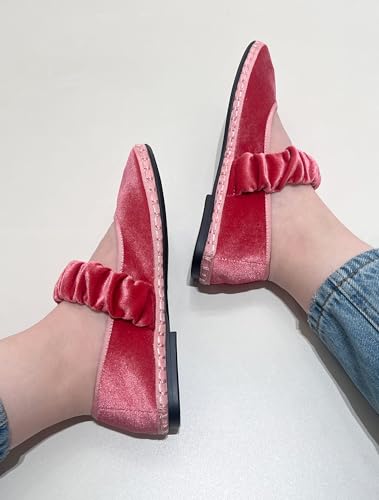 • DESIGN:Sophisticated velvet ballet flats in a classic Mary Jane style, featuring a ruched elastic strap and elegant round-toe silhouette.