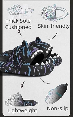 • 【Lightweight and Comfort】Our Shark Slide - Not only are these shark slides incredibly comfortable, but they are also lightweight, allowing for effortless movement. The 1.57 inch thick sole provides stability and support, while the soft sole ensures a gentle touch against your skin. With enough arch support, these shark slippers promote proper foot alignment, reducing strain and enhancing overall comfort.