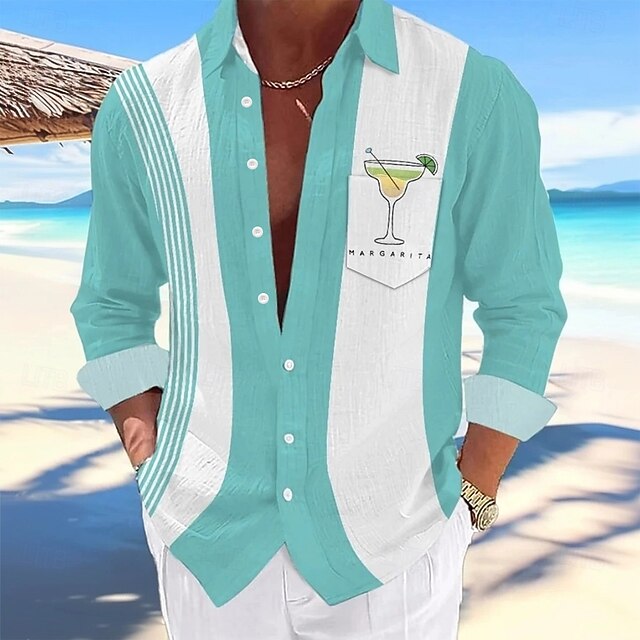 Men's Bird Cocktail Shirt Summer Hawaiian Shirt Button Up Shirt Long Sleeve Hawaiian Outdoor Vacation Holiday Spring Fall Turndown 3D Print Linen Like Shirt Light Green Blue Purple Green 10