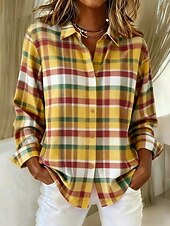 More information about Women's Shirt Blouse Graphic Geometric Plaid Casual Long Sleeve Shirt Collar Regular Tops Daily Patchwork Buttons Print Yellow Blue Orange Khaki Fall Winter