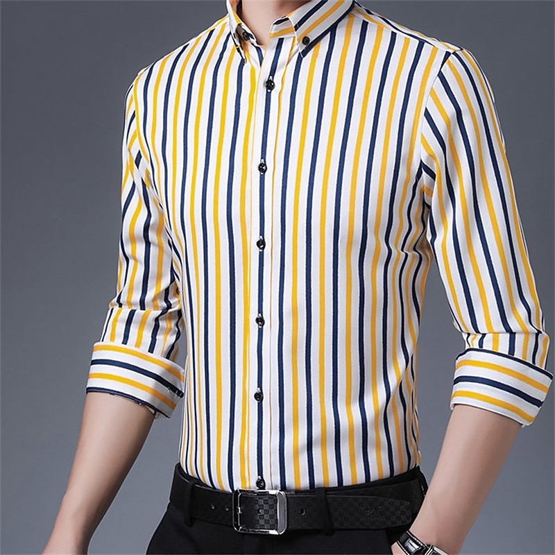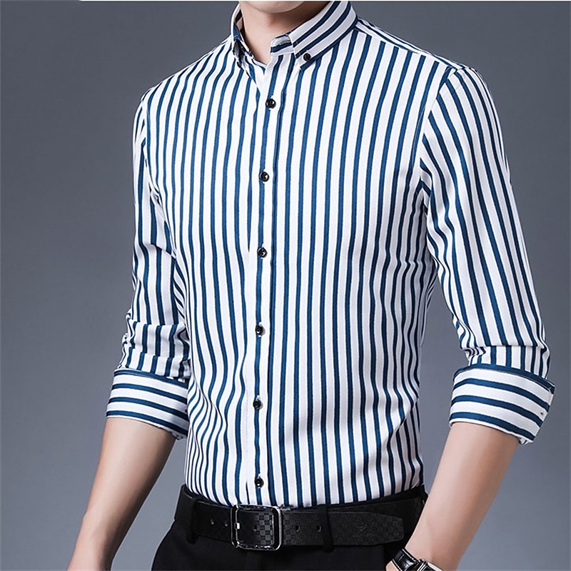 More information about Men's Dress Shirt Striped Wedding Outdoor Black White Yellow Navy Blue Long Sleeve Turndown Spring & Fall Clothing Apparel Button-Down