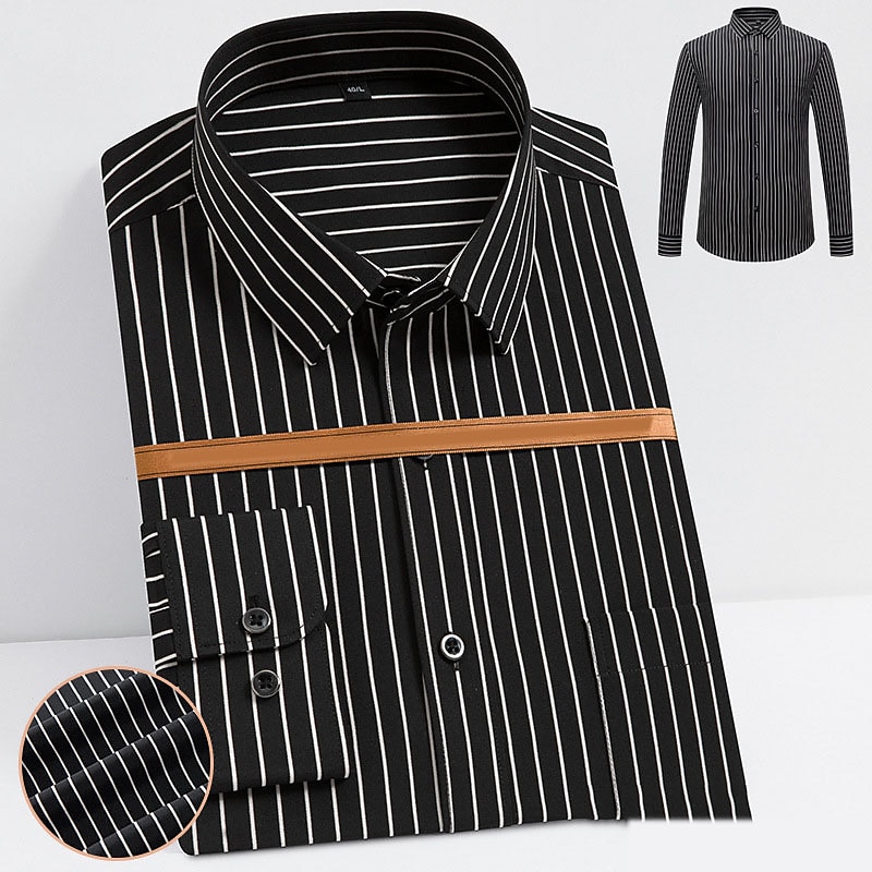 Men's Dress Shirt Striped Wedding Outdoor Black White Yellow Navy Blue Long Sleeve Turndown Spring &  Fall Clothing Apparel Button-Down 11