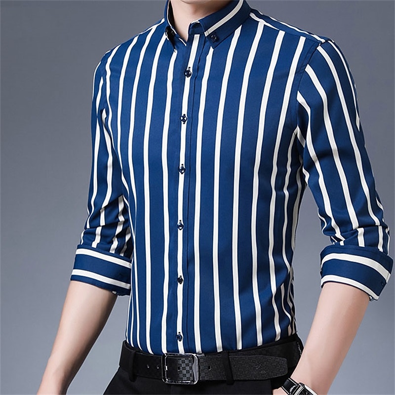 HOT ! Men's Dress Shirt Striped Wedding Outdoor Black White Yellow Navy Blue Long Sleeve Turndown Spring & Fall Clothing Apparel Button-Down