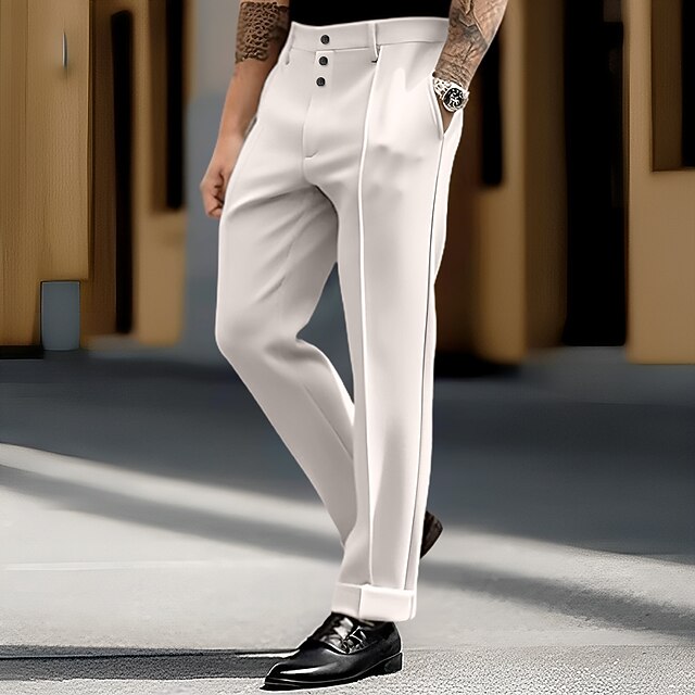 HOT ! Men's Trousers Dress Pants Slacks Pocket Plain Comfort Soft Wedding Outdoor Daily Fashion Casual Black White