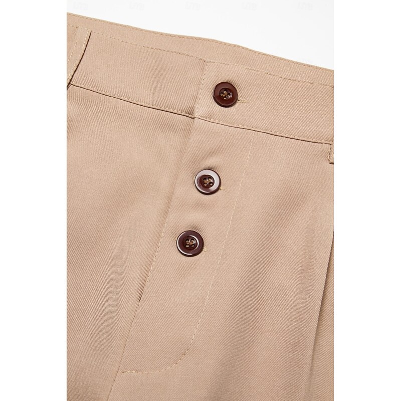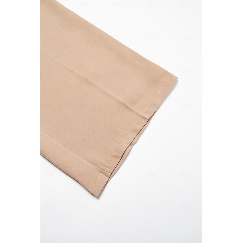 Highlights [Fabric] : Crafted from high-quality polyester, these men's trousers offer a durable and breathable wearable experience. The fabric's smooth, soft touch and micro-elasticity make it ideal for maintaining a sleek, tailored fit throughout the day. [Fit] : Featuring a regular fit, these trousers provide a balanced silhouette that suits various body types. The mid-waist design combines comfort with a touch of sophistication, ensuring a versatile addition to any wardrobe. [Design Highlights] : These trousers showcase a classic flat-front style with pleats for added elegance. The turned-up cuffs contribute a modern and trendy flair, while the distinctive three-button closure adds an extra level of detail. Practical pockets complete the design, offering functionality without sacrificing style. [Occasions] : Perfect for daily wear, outdoor outings, and casual gatherings, these trousers transition seamlessly from business environments to social settings. Their refined yet relaxed aesthetic makes them a versatile choice for various occasions. [Size Range] : Available in a range of sizes from S to 3XL, accommodating different body shapes and preferences. This extensive size selection ensures the perfect fit for any man looking to enhance his wardrobe.