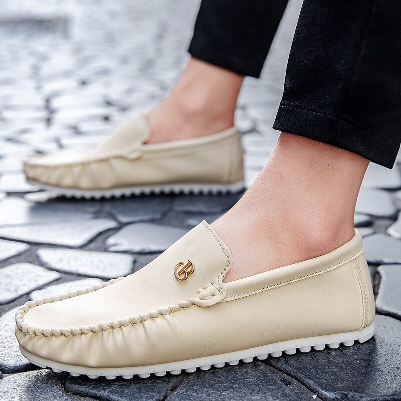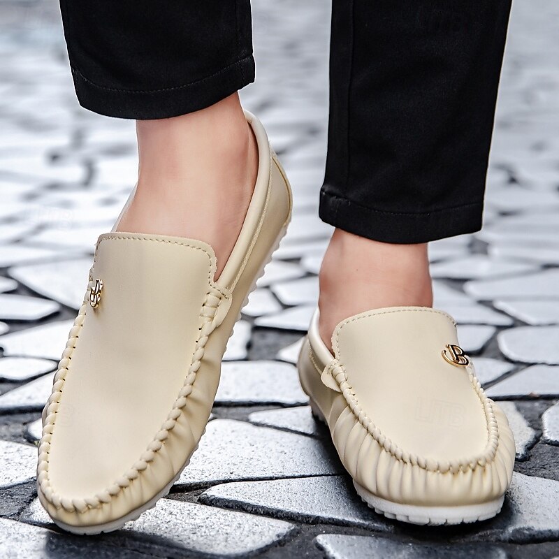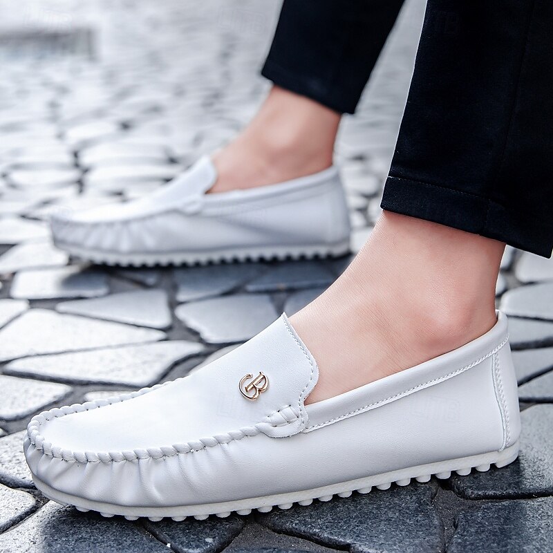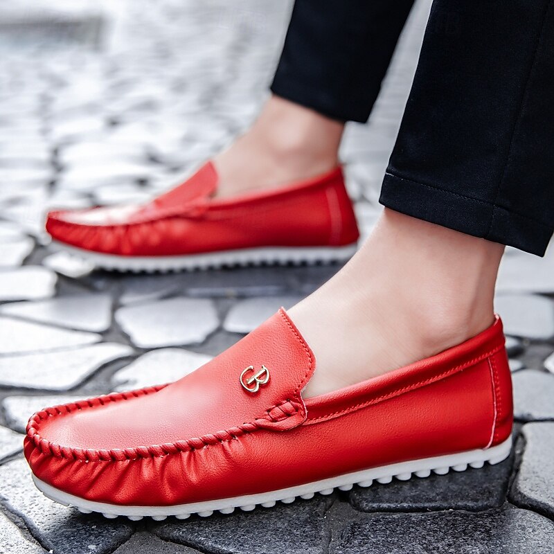 HOT ! Men's Red Moccasins with Elasticized Design and Logo, Comfortable Slip-On Shoes for Casual Outings and Relaxing Vacations