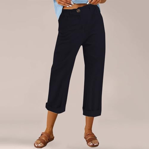 HOT ! Capri Pants for Women Cotton Linen Straight Wide Leg Capris Casual Summer 2025 Loose Elastic High Waist Cropped Trouser