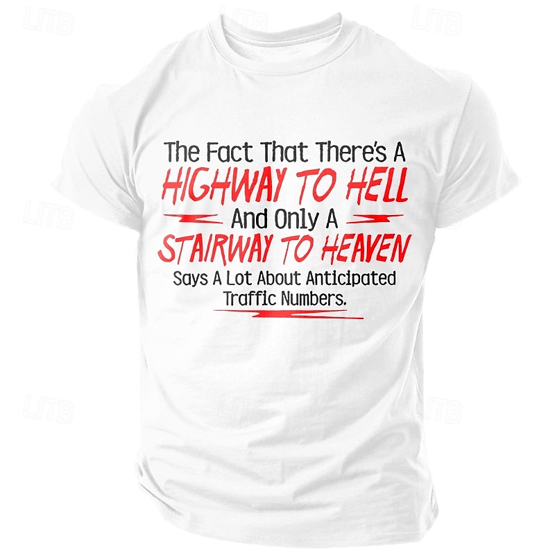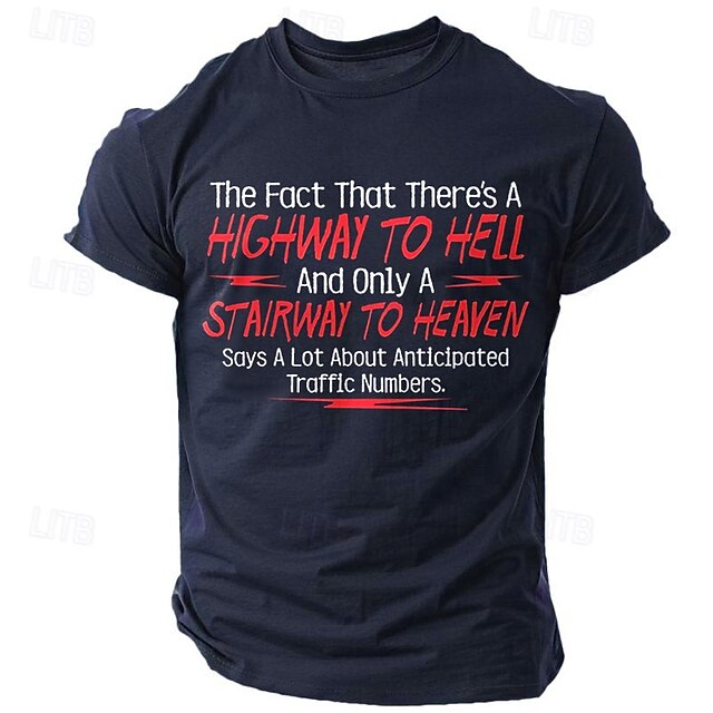 trending ! Men's Funny Graphic T-Shirt - Highway To Hell, Stairway To Heaven Traffic Numbers Pun Short Sleeve