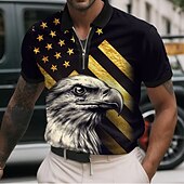 HOT ! Independence Day Men's American US Flag Eagle Zip Polo Short Sleeve Polo Shirts Turndown Casual Daily Casual Zip Up 3D Print Summer Black