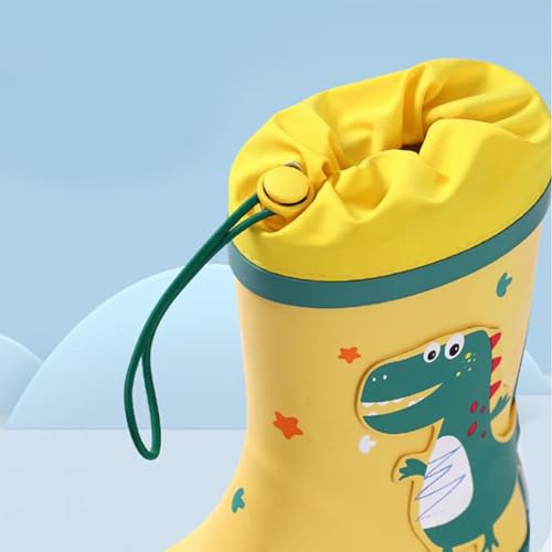 Zerodis Cartoon Dinosaur Kids Rain Boots, Slip Tall Design Rubber Boys GirlsElasticity (Yellow and Green Dinosaur 27) 2