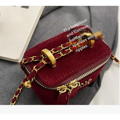 HOT ! Women's Mini Suede Box Bag PU Crossbody Shoulder Bag with Chain Strap Black/Brown/Coffee/Caramel/Burgundy for Everyday Use