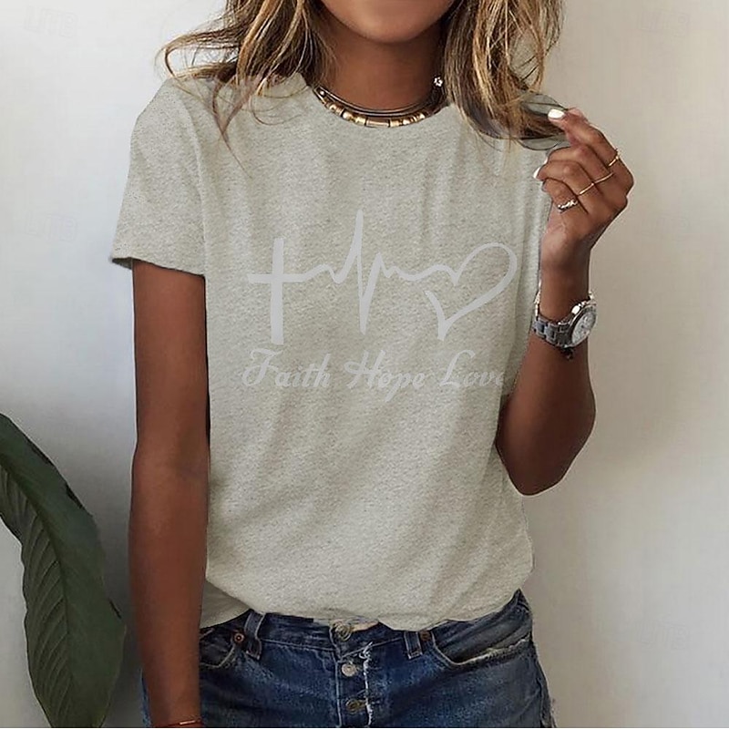 HOT ! Women's T Shirt Heart Letter Basic Short Sleeve Round Neck Regular Tops Casual Weekend Print White Pink Blue Green Gray Summer