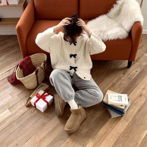 Womens Bow Knot Cardigan Sweater Long Sleeve Crew Neck Cable Knit Cardigan Coats Y2K Open Front Pullover Tops 4