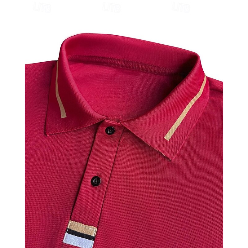 HOT ! Men's Golf Shirt Golf Polos Shirts Work Casual Lapel Short Sleeve Basic Modern Plain Buttons Summer Regular Fit Wine Golf Shirt