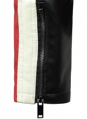 • 【Style】This is a classic and fashion motor biker leather jacket, stylish design, good match with jeans, leather pants, casual trousers, t shirts, sweaters or sweatshirts to create a eye-catching look.