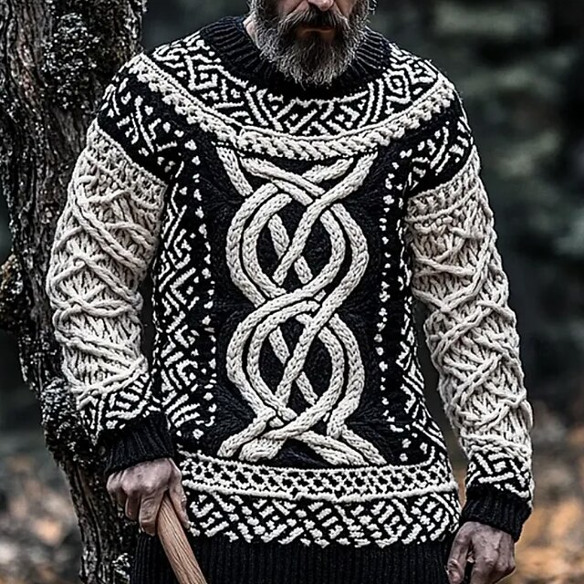 More information about Men's Viking Pullover Sweater Jumper Knitwear Crewneck Retro Vintage Casual Daily 3D Print Knitting Keep Warm Long Sleeve Spring Fall Winter Black Red Green