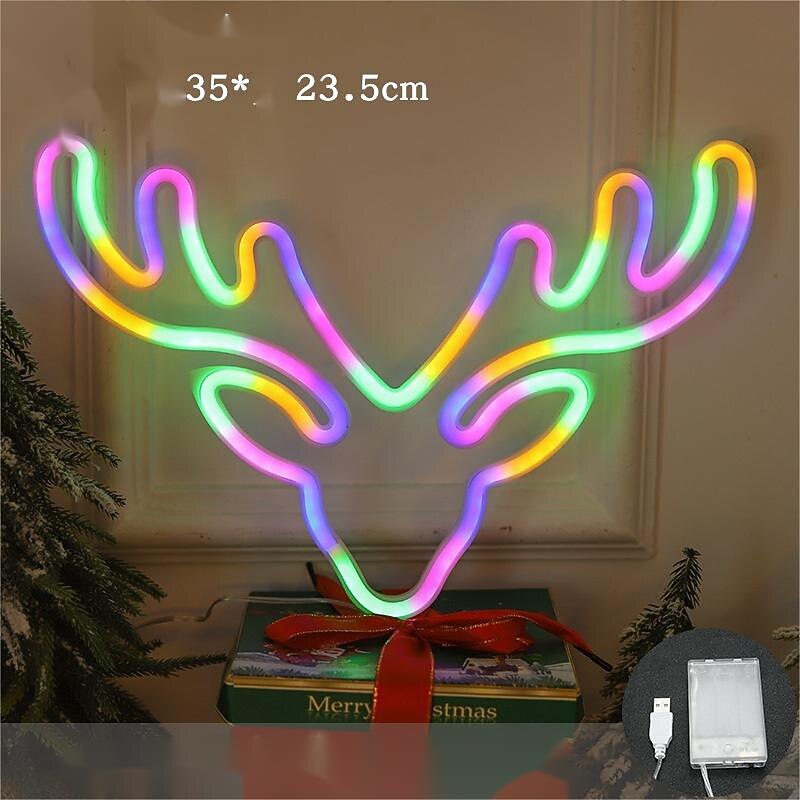 Christmas Neon Lights Decoration LED Neon Sign Light Love Deer Elk Bell Snowflake Sock Christmas Tree Shape Night Light for Weddings Party 1