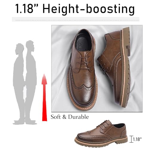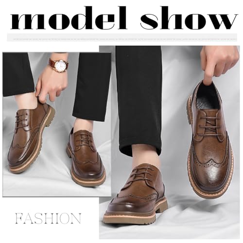 Men's Leather Brogues Wingtip Oxfords Casual Business Lace Up Anti-Slip Lug Sole Block Heel Derby Shoes for Wedding Office Formal Dress Shoes 7