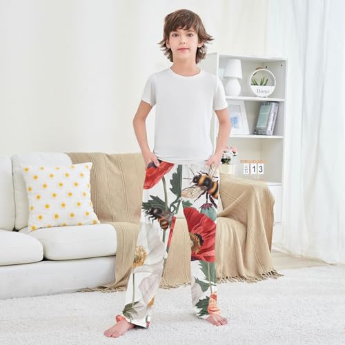 ZZXXB Poppy Flowers Bee Boys Long Pants Soft Trousers Elastic Waist Kids Lounge Bottoms with Pockets S-XL 6