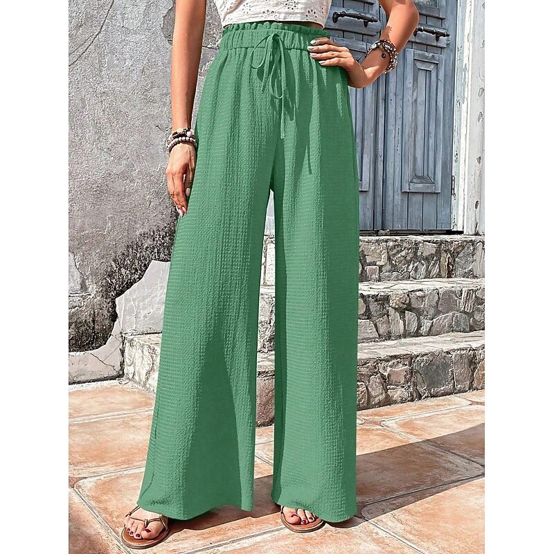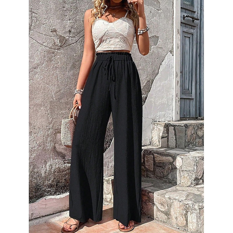 More information about Women's Wide Leg Pants Trousers Side Pockets Plain Full Length Black Spring & Summer