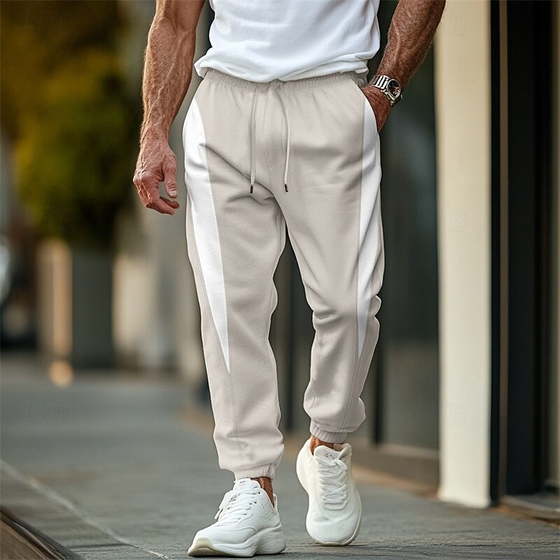 Men's Sweatpants Joggers Trousers Casual Pants Drawstring Elastic Waist Color Block Plain Comfort Soft Full Length Outdoor Casual Daily Fashion Streetwear Black Khaki 9