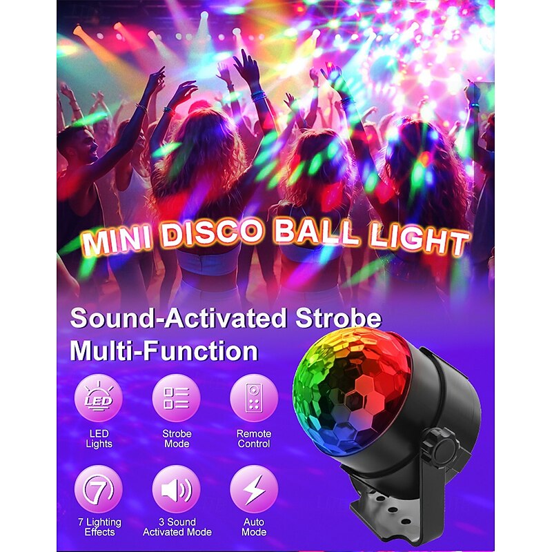Luditek 2-Pack Sound Activated Party Lights with Remote Control Disco Ball Light DJ Strobe Lamp for Home Room Dance Party Supplies White Elephant Gifts Birthday Christmas Halloween Party Decorations 7