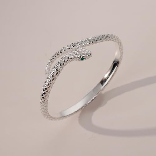 GIGB PBDK Silver Snake Open Cuff Bangle Bracelet for Women,Personality Punk Green Rhinestone Jewelry Gifts,Unique Sparkly Halloween Anniversary Bracelets 7