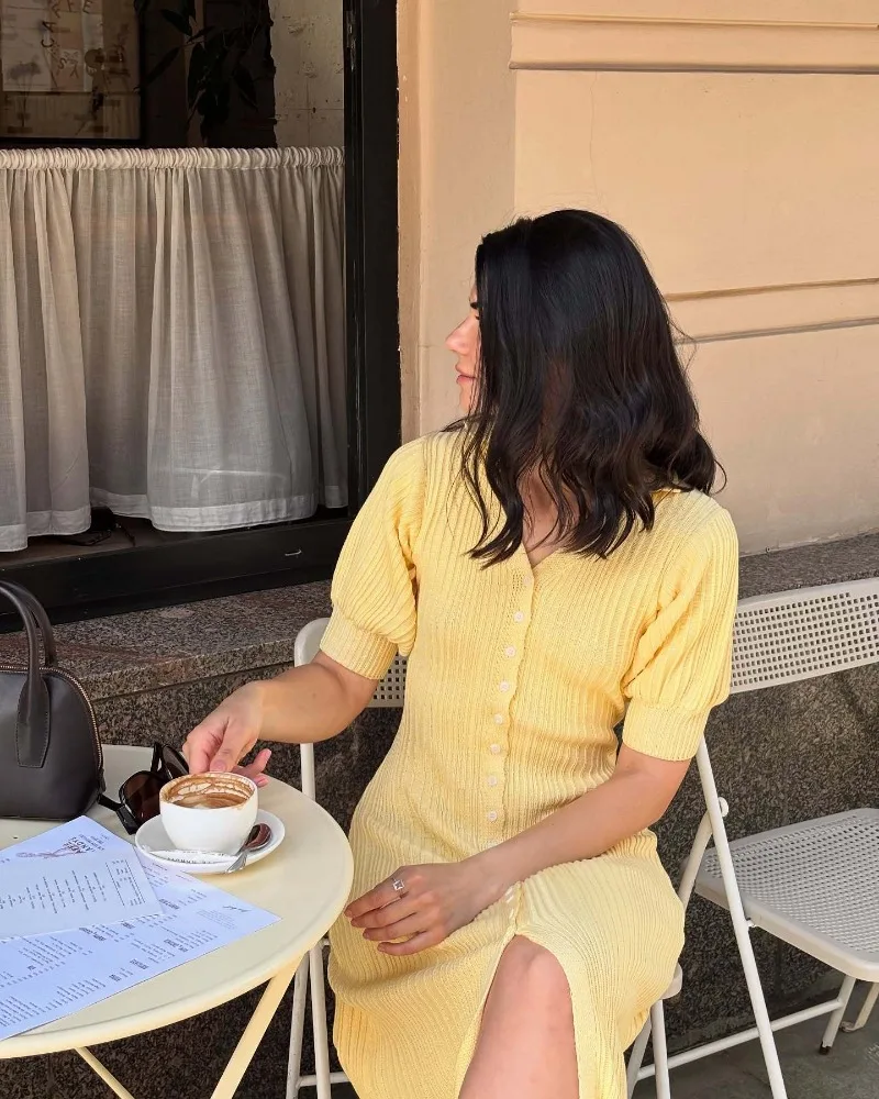Trendix Slit Long Cardigan Knit Dress Women Summer Fashion Short Sleeve Patchwork High Waist Maxi Dress Street Casual Y2K Dress
