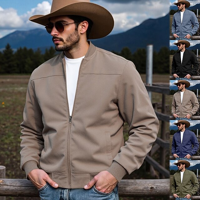 Men's Faux Suede Blazer Casual Jacket Vacation Daily Warm Pocket Fall Winter Plain Fashion Classic Stand Collar Regular Black Navy Blue Brown Army Green Light Blue Jacket 28