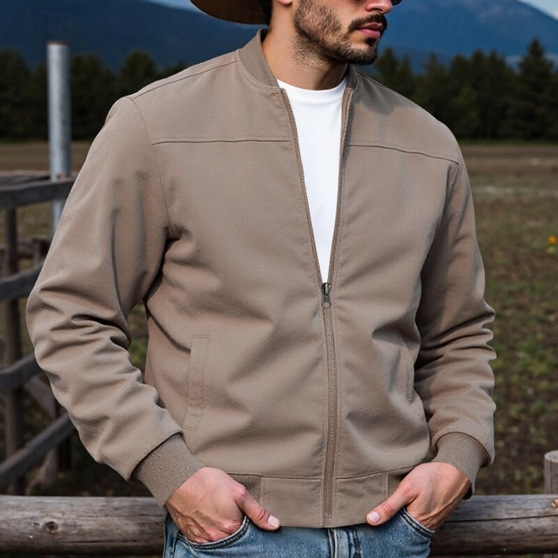 Men's Faux Suede Blazer Casual Jacket Vacation Daily Warm Pocket Fall Winter Plain Fashion Classic Stand Collar Regular Black Navy Blue Brown Army Green Light Blue Jacket 25