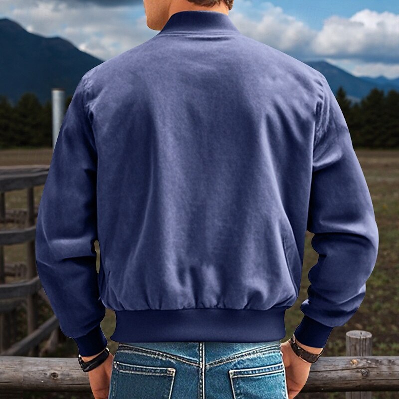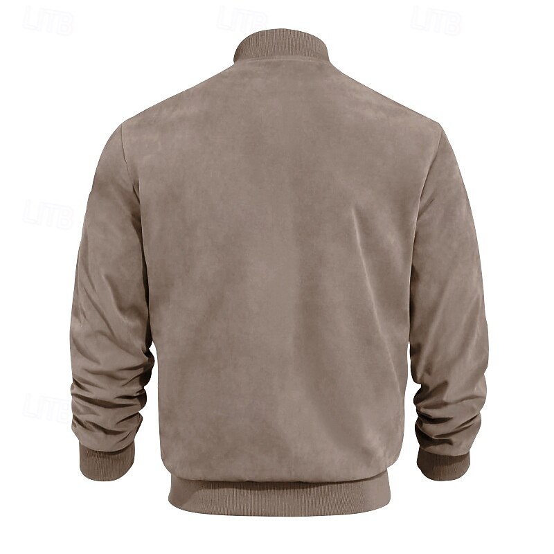 Men's Faux Suede Blazer Casual Jacket Vacation Daily Warm Pocket Fall Winter Plain Fashion Classic Stand Collar Regular Black Navy Blue Brown Army Green Light Blue Jacket 24