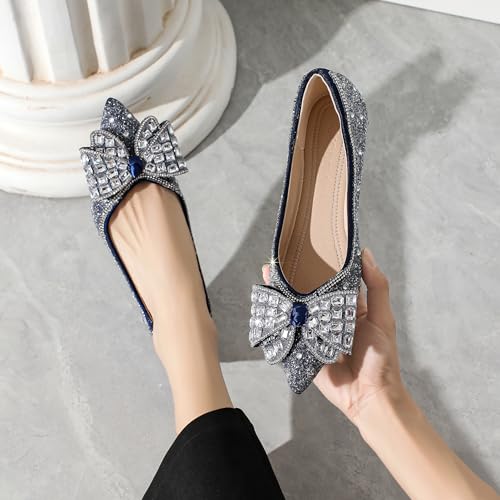 Women's Pointed Toe Flats Diamond Bow Sequin Comfortable Slip On Flats Light Weight Dress Shoes 6