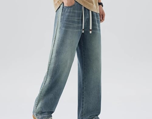 More information about Men’S Vintage Baggy Jeans Mid Waist Straight Leg Denim Pants Streetwear Style Zipper Fly Distressed Wash Jeans