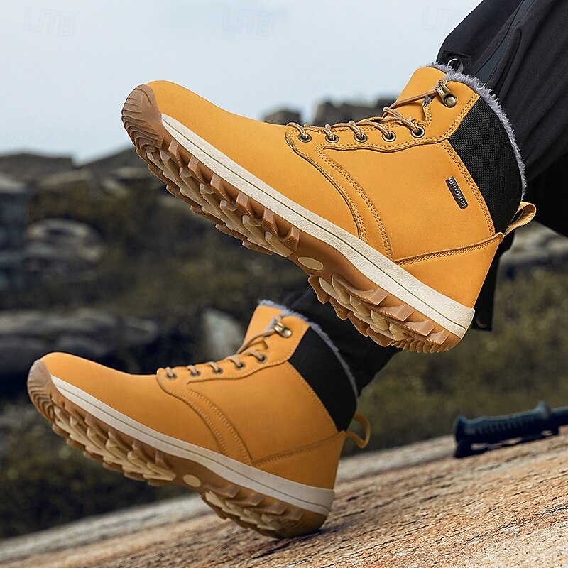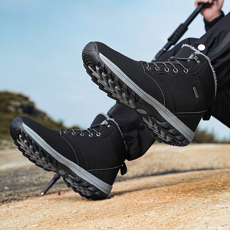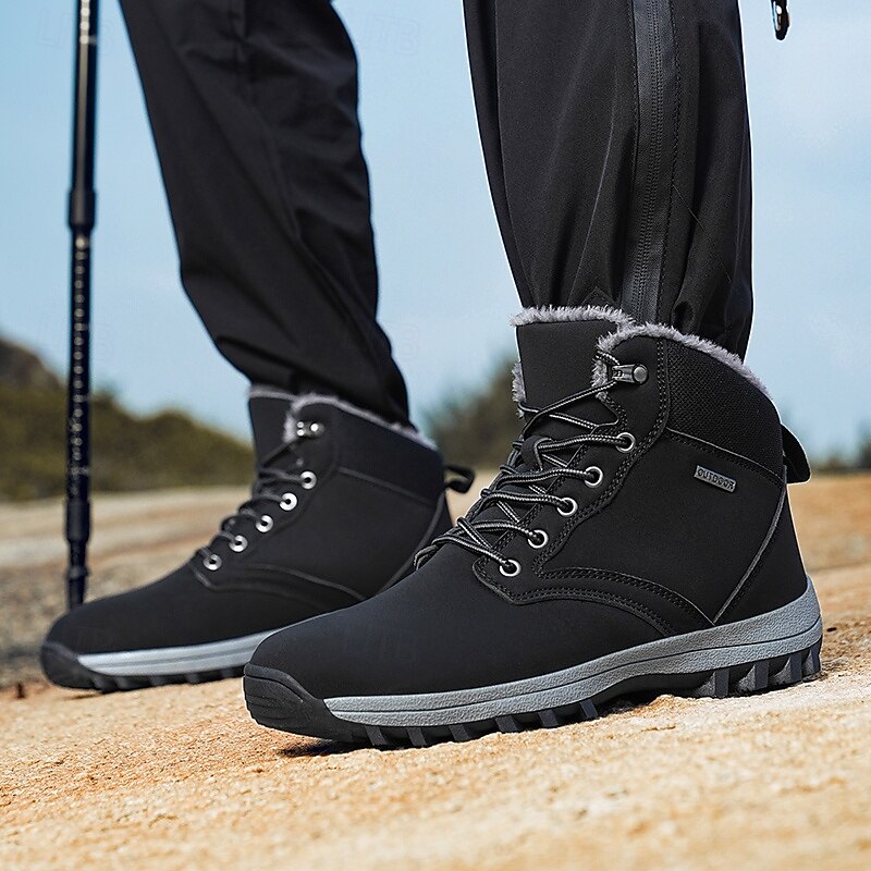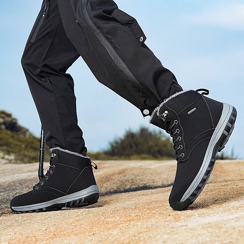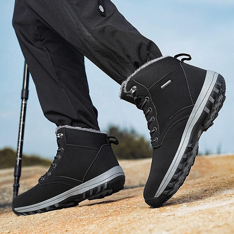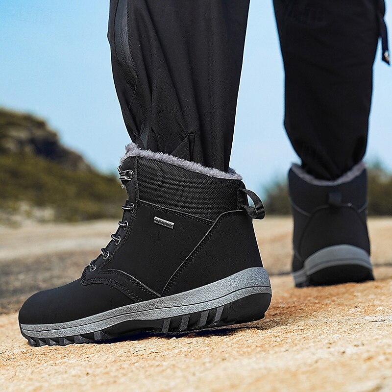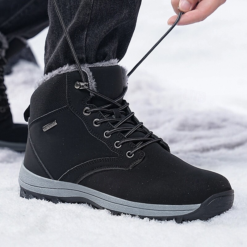 Men's Waterproof Insulated Winter Boots with Non-Slip Rubber Sole and Faux Fur Lining for Outdoor Hiking