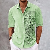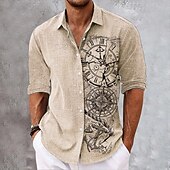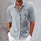 More information about Men's Nautical Clock Compass Shirt Button Up Shirt Long Sleeve Fashion Streetwear Designer Outdoor Casual Daily Fall Winter Autumn / Fall Turndown Print Green Khaki Gray