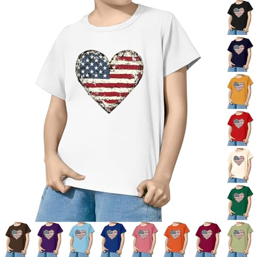 Kids Short Sleeve T-Shirt 4th of July Patriotic Tees American Flag Tops for Teen Toddler Girls Boys Cute Crewneck Tops 4
