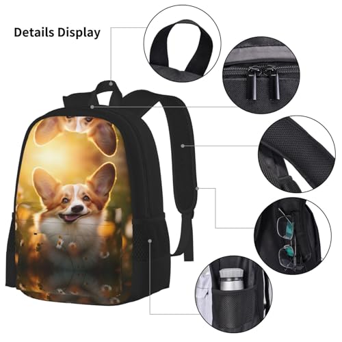 HOT ! nanger Corgi Floral Flowers Print 3-Piece Set Backpack, Lunch Bag And Pencil Case, For Travel, College, And Daily Use