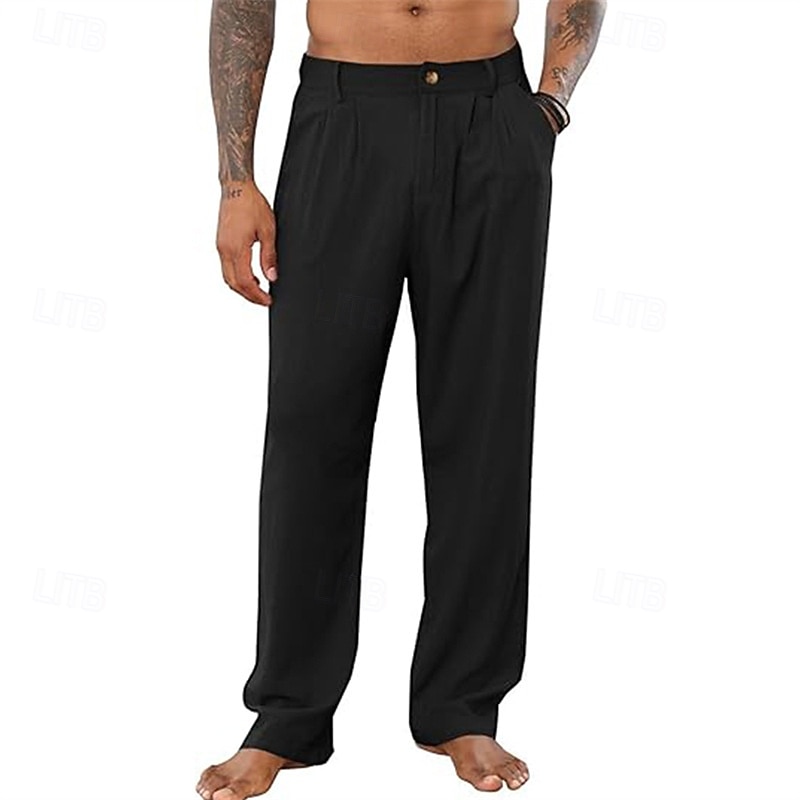 $27.99 - Men's Linen Pants Trousers Summer Pants Pleated Pants Buttons Straight Leg Plain Comfort Breathable Full Length Office Casual Daily Fashion Classic Style Black White 2025. Shop for cheap Classic online? Buy at lightinthebox.com on sale today!