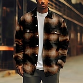 More information about Men's Geometric Grid / Plaid Corduroy Shirt Shirt Jacket Overshirt Long Sleeve Casual Outdoor Dailywear Fall Winter Turndown Button-Down Warm Jacket with Flap Pockets Brown