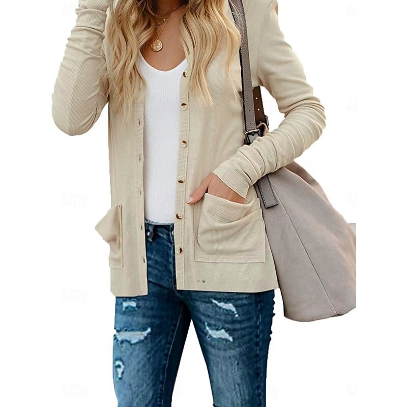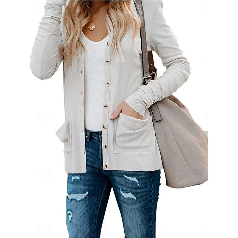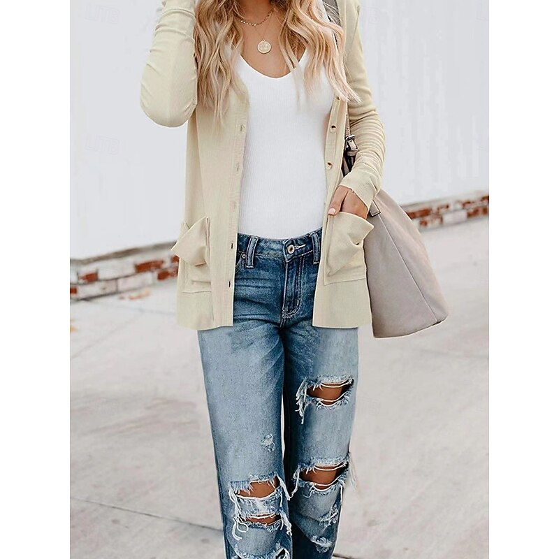 More information about Women's Casual Jacket Breathable Comfortable Buttons Pocket Casual Plain Vacation Street Casual Daily Wear Single Breasted Regular V Neck Regular Fit Long Sleeve Outerwear White Pink Khaki Summer