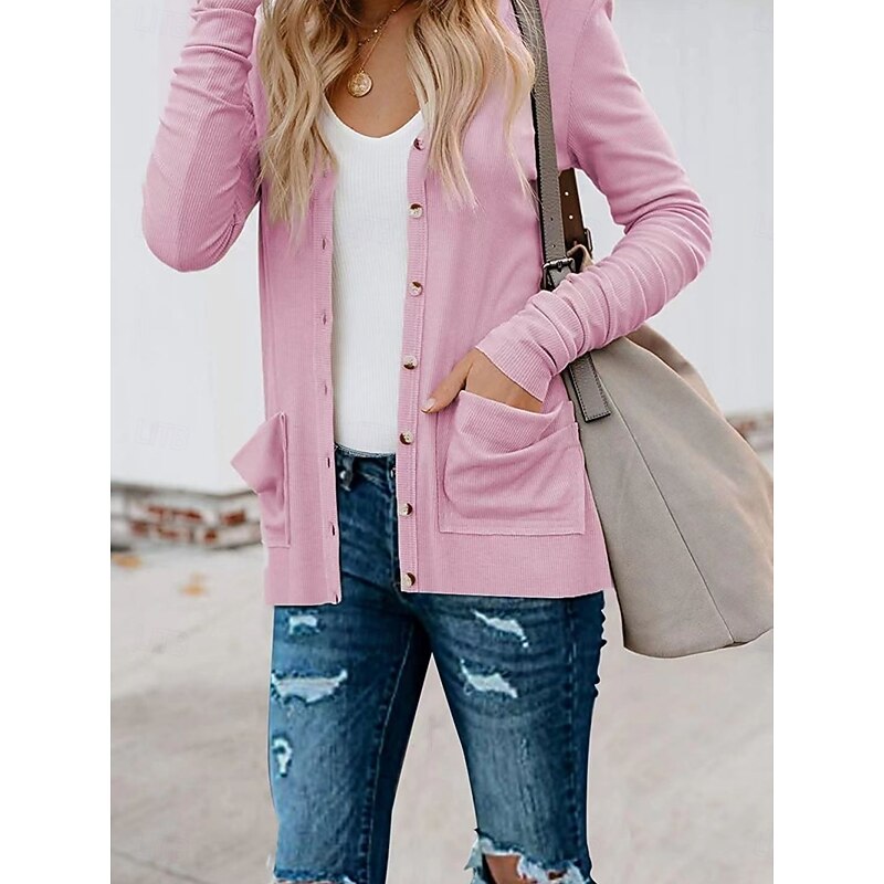HOT ! Women's Casual Jacket Breathable Comfortable Buttons Pocket Casual Plain Vacation Street Casual Daily Wear Single Breasted Regular V Neck Regular Fit Long Sleeve Outerwear White Pink Khaki Summer