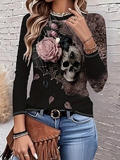 More information about Halloween Women's T Shirt Skulls Floral Graphic Vintage Stylish Classic Long Sleeve Crew Neck Round Neck Regular Tops Daily Print Dusty Rose Spring Fall Winter