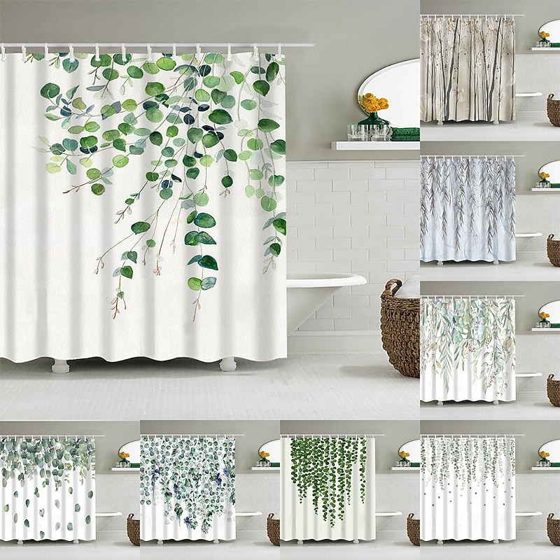 Why Choose Shower Curtain with Hooks 180cm*180cm(70"*70") Polyester Washable Waterproof Landscape Plant Leaf Pattern?