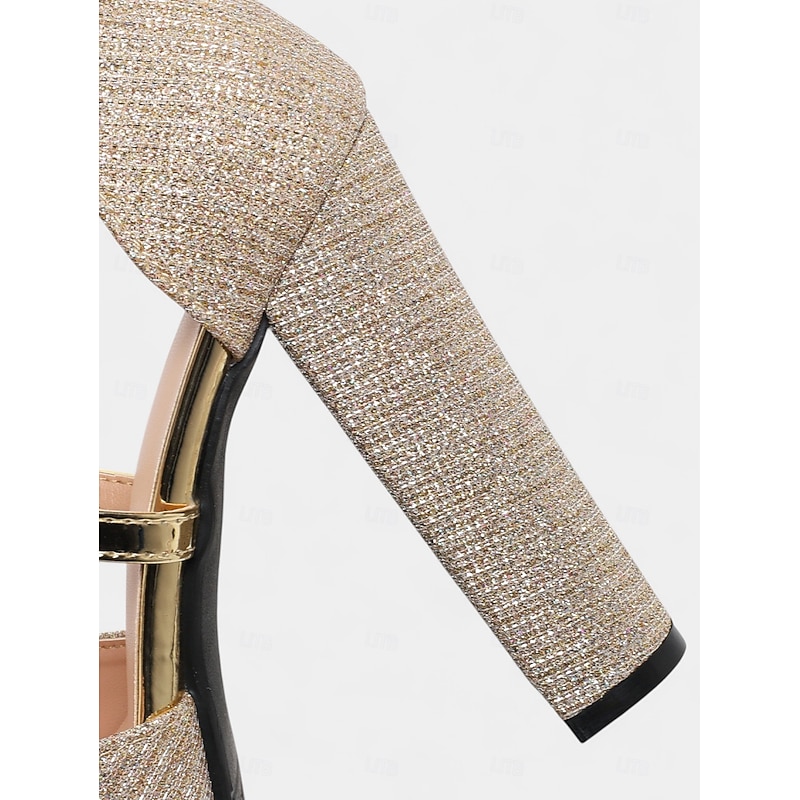 Women's Glitter Platform High Heel Sandals with Ankle Strap - Chunky Block Heel Party Shoes for Nightlife and Clubbing 1