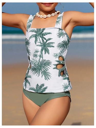 MakeMeChic Girl's Swimsuit Tankini Tropical Print Cut Out Wide Strap Girls Bathing Suits Size 10-12 6