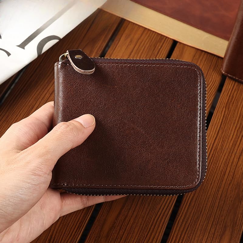 HOT ! Genuine Leather Bifold Wallet for Men, Elegant Zip Around Design with RFID Blocking (Brown)