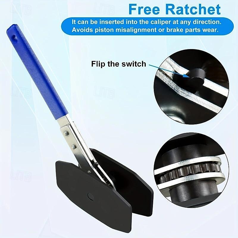 Brake Caliper Press Tool, Brake Piston Spreader, 360 Degree Ratchet Swing Wrench With 2Pcs Steel Plates For Car Ratcheting, Single Twin Quad Piston Calipers Brake Pads Replacement 7