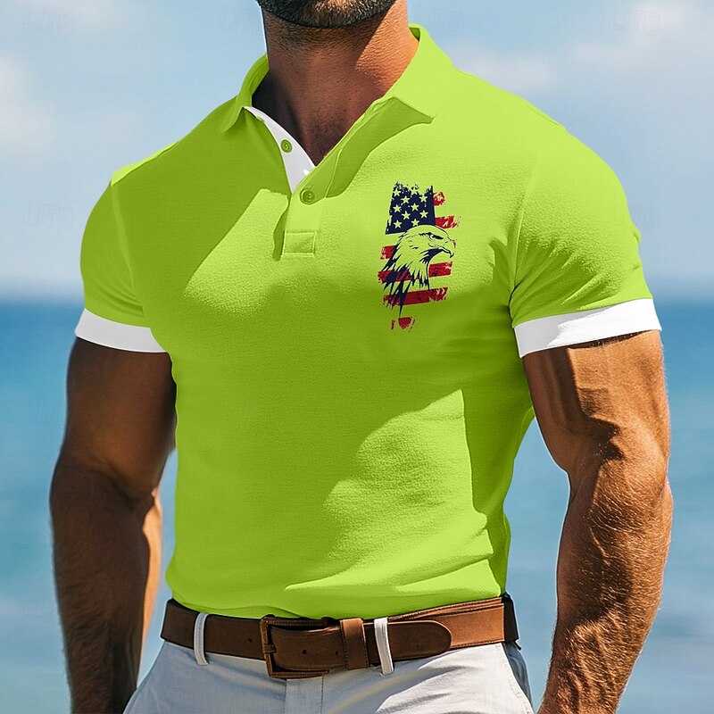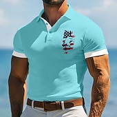 More information about Men's Golf Shirt Vacation Work Lapel Ribbed Polo Collar Short Sleeve Basic Modern Color Block Patchwork Pocket Summer Spring Spring & Summer Regular Fit White Blue Green Gray Golf Shirt