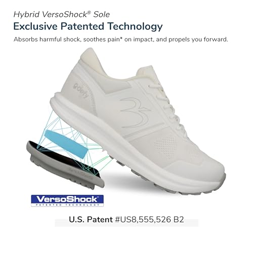 Sole material: Ethylene Vinyl AcetateOuter material: Fabric-and-syntheticClosure type: Lace-UpWater resistance level: Not Water ResistantMinimalist VersoShock Sole: Crafted for unparalleled shock absorption and energy return, reducing pain associated with running, walking, and prolonged standing.BubblePoly-Tech Foam Midsole with Advanced Poly-Nylon: A lightweight, ultra-responsive design that delivers next-level cushioning, energy efficiency, and durability, making every step effortless.Custom-Knitted Upper Fabric: Breathable, washable, and designed for a secure yet flexible fit, providing ample toe space and enduring comfort for long runs.Dual Orthotics Included: Tailored support for body alignment and motion stabilization, enhancing comfort and reducing fatigue.Enhanced Stabilization System: Lateral stabilizers integrated into the VersoShock outsole improve gait, balance, and overall performance. excellent for everyday use. superior materials and excellent craftsmanship ensure long-lasting durability.