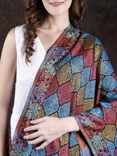 HOT ! Black-Onyx Rayon Stole from Punjab with Woven Multicolor Parsi Design